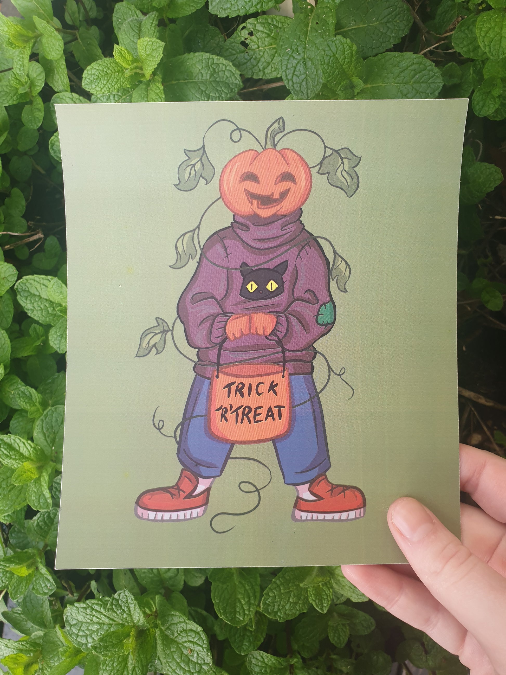 - Featuring a cute pumpkin-headed boy holding a trick'r'treat bag
